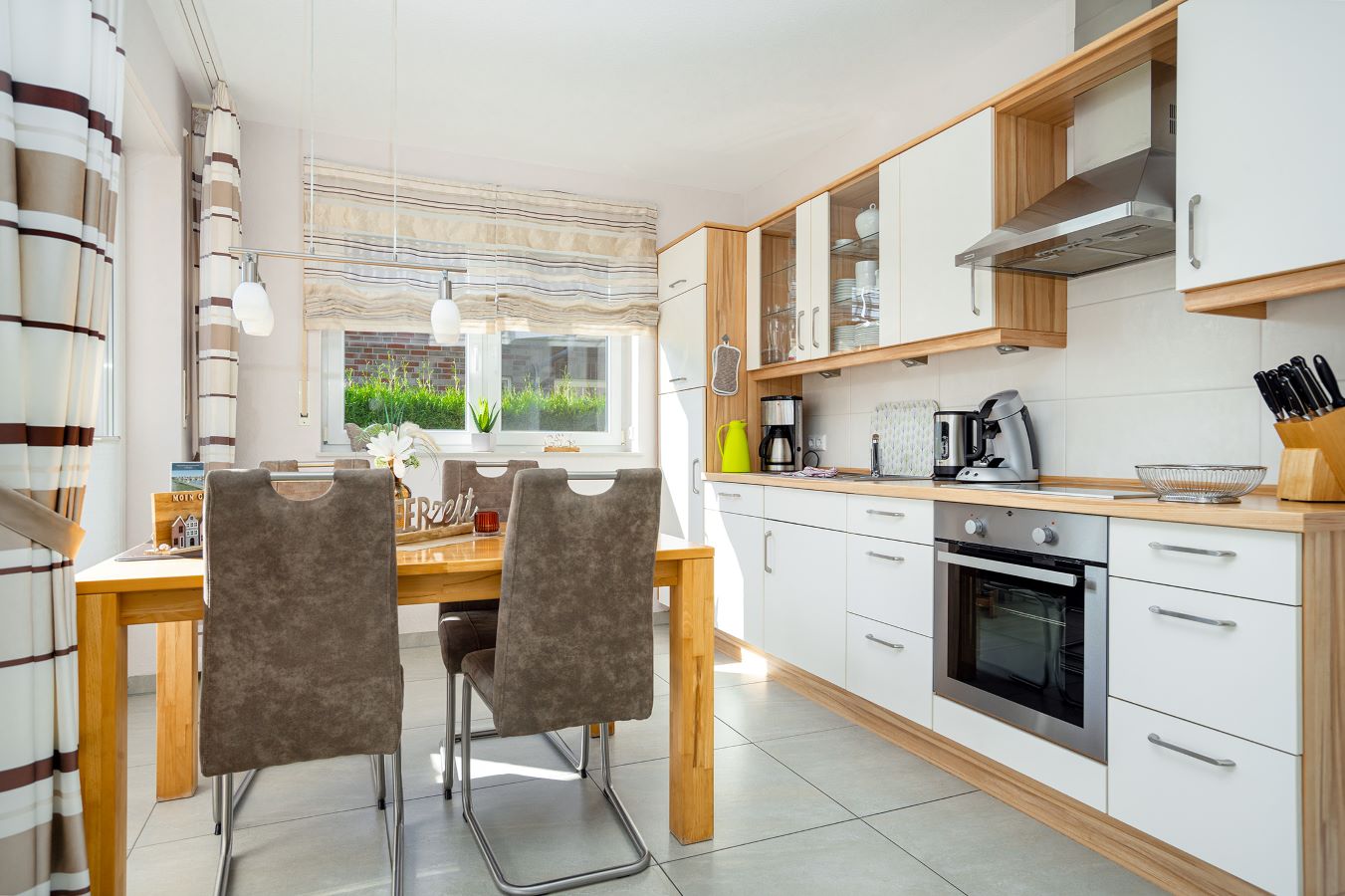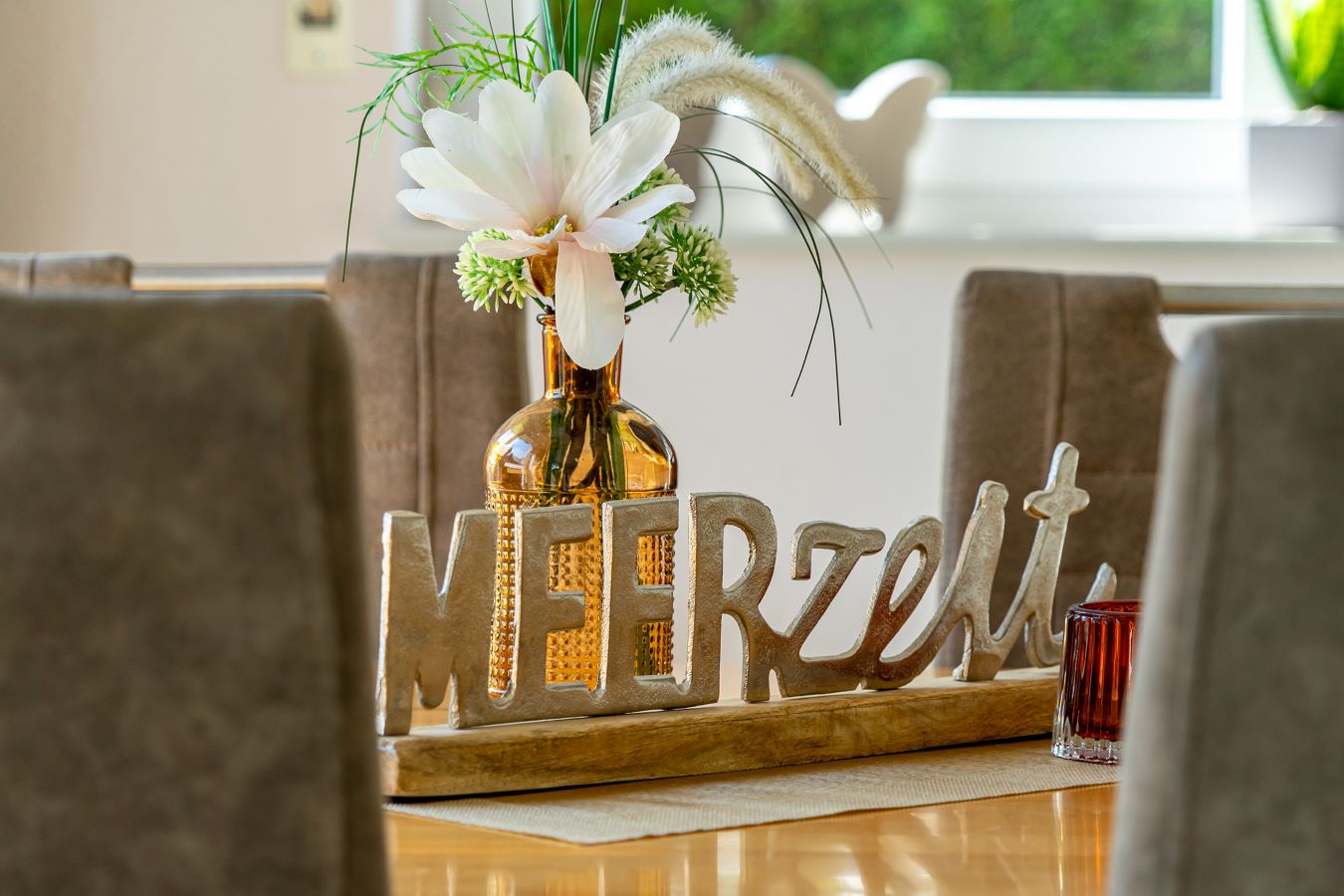 Die Einrichtung der Ferienwohnung “Grachtentraum 1” wurde von uns mit großer Sorgfalt und viel Liebe zum Detail vorgenommen. Besonderes Augenmerk haben wir auf eine hochwertige Ausstattung gelegt, die hohen Ansprüchen gerecht wird. Abgestimmte Details und Farben sorgen in der Ferienwohnung Grachtentraum 1 für eine angenehm-behagliche Raumatmosphäre. Die großen, bodentiefen Fenster im Wohnbereich bieten optimale Lichtverhältnisse.